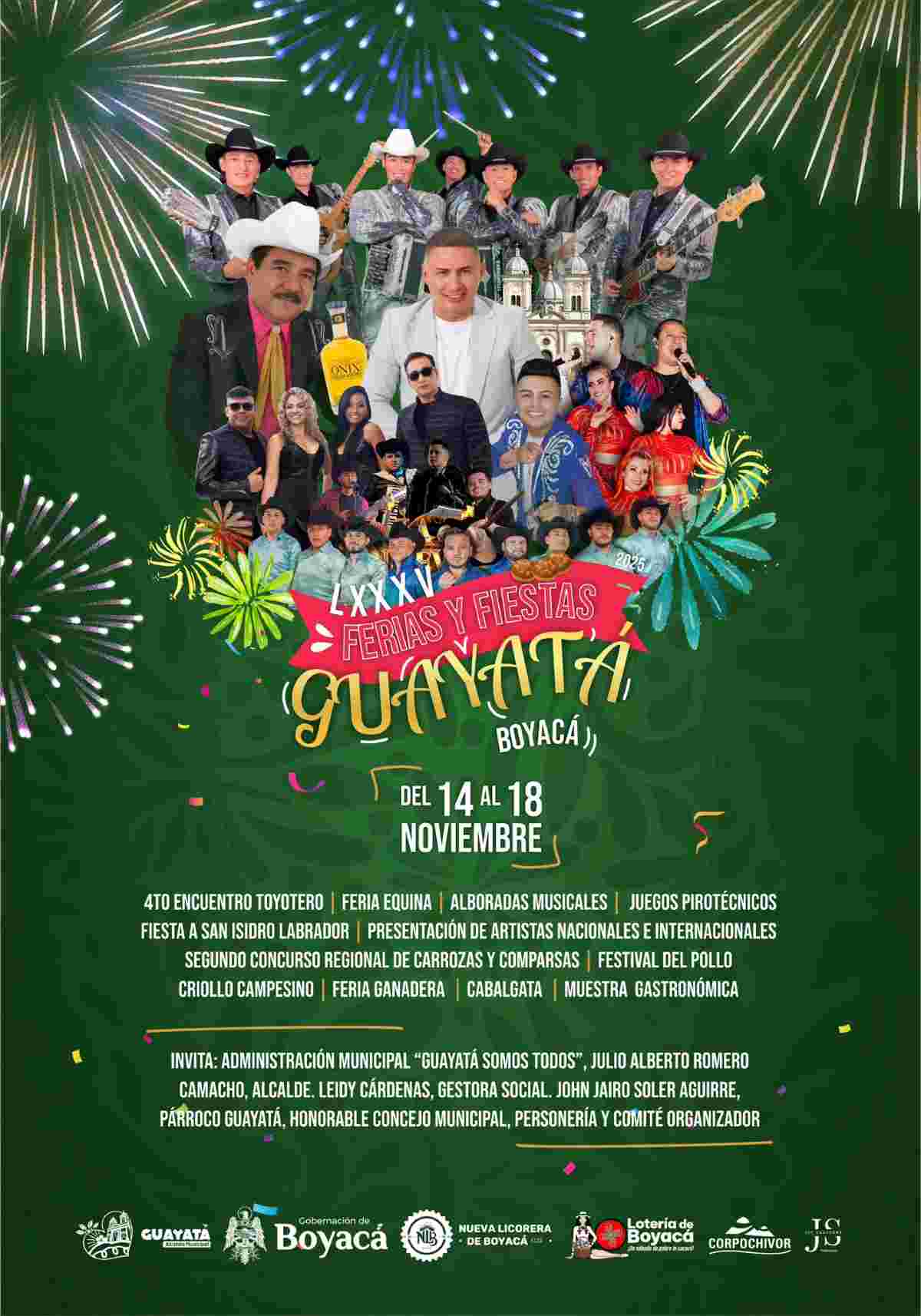Sora, provincia del Centro Sora, Boyacá, ColombiaDel 4 al 8 de diciembre 2025 Sora, Boyacá, Colombia Festividades en Honor a Santa Bárbara y San Agatón Artistas invitados: Rafael María Díaz. El Agropecuario. Hernán Gómez. Los Originales. La Tribu del Tenor. Generación Orquesta. Deejay Mao. Organiza: Alcaldía Municipal de Sora Más información: facebook.com/alcaldia.soraboyaca facebook.com/photo Ir a la Agenda Cultural Boyacá